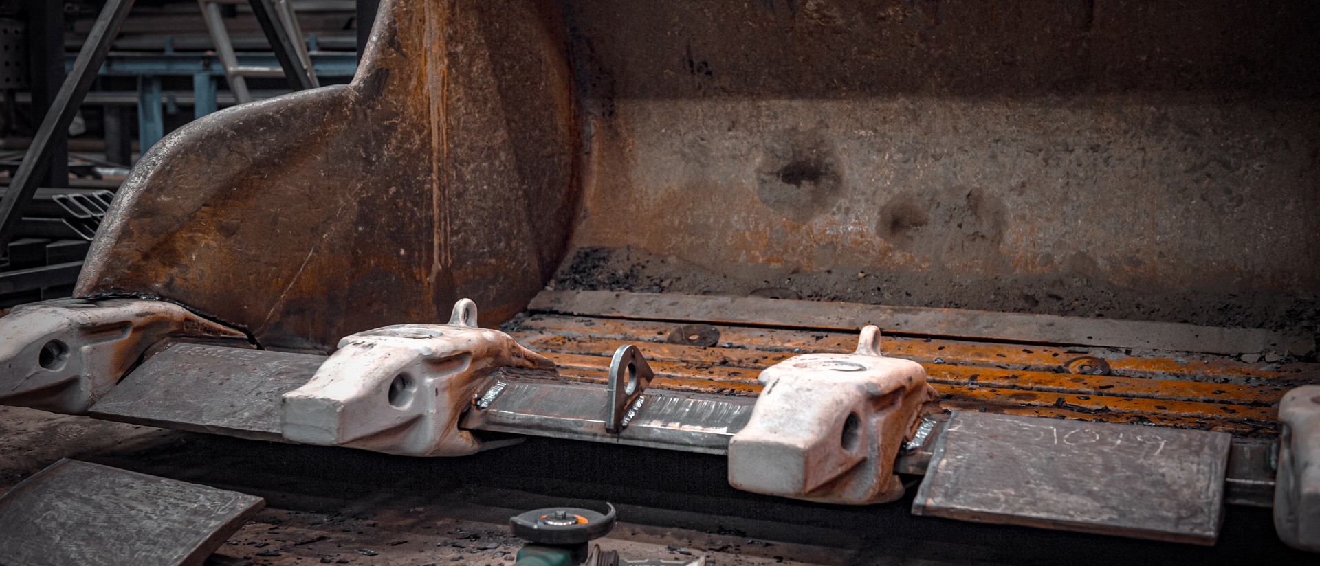 En reparation kan exempelvis handla om att vi byter ut slit- eller skärstål, förstärkning av skopan eller reparation av sprickor.